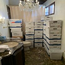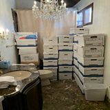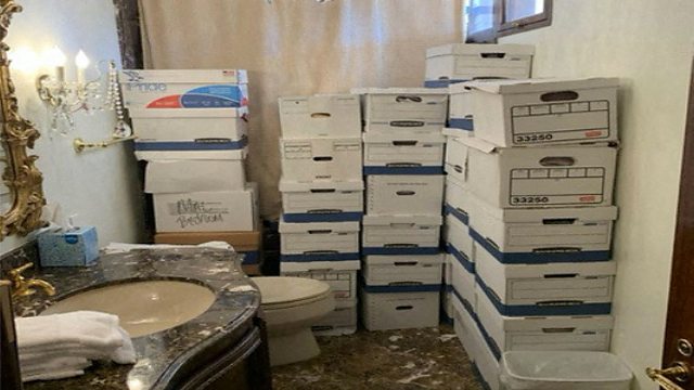 Photo: Classified documents’ boxes in a bathroom in Trump’s Mar-a-Lago club in Florida in early 2021. Credit: Justice Department / Reuters