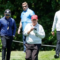 Photo: Donald Trump with his aides at the Trump National Golf Club in Virginia. Credit: Reuters