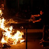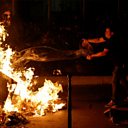 (IMAGE: A person throws water to a burning container during riots in Paris CREDIT: REUTERS/Juan Medina)