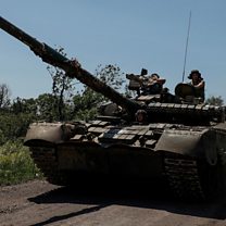 (IMAGE: Ukrainian troops ride a captured Russian tank near Bakhmut CREDIT: Radio Free Europe/Radio Liberty/Serhii Nuzhnenko via REUTERS/File Photo)