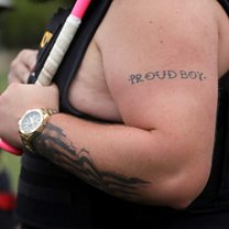 (IMAGE: A tattoo on a person’s arm at a Proud Boys rally in Portland, Oregon, September 26 2020 CREDIT: LEAH MILLIS/Reuters)