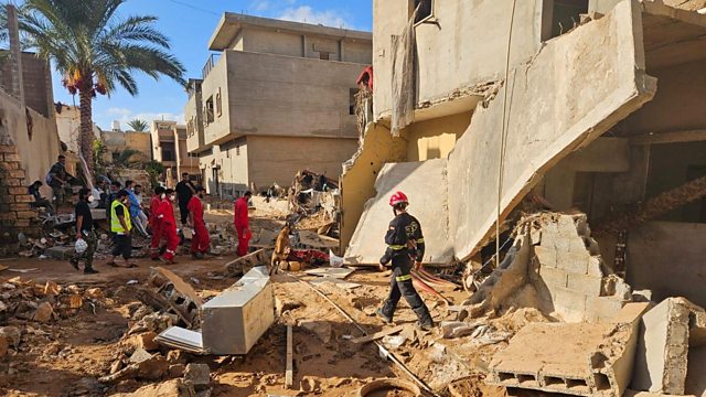 (Picture: Rescue members work in the aftermath of a powerful storm and heavy rainfall in the Libyan city of Derna. Credit: REUTERS)