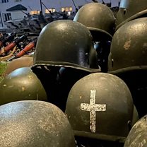 (IMAGE: Helmets, RPGs and APCs taken from Armenian separatists CREDIT: BBC)