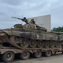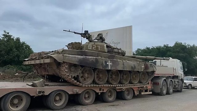 (IMAGE: A captured T-72 vehicle paraded by Azerbaijan's military CREDIT: BBC)