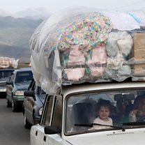 (Picture: Ethnic Armenians from Nagorno-Karabakh cross the border with Azerbaijan by car, carrying their belongings with them, near the village of Kornidzor in Armenia. Credit: Anatoly Maltsev/EPA-EFE/REX/Shutterstock)