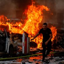 (Picture: A man runs on a road as fire burns after rockets were launched from the Gaza Strip Credit: Amir Cohen/ Reuters)