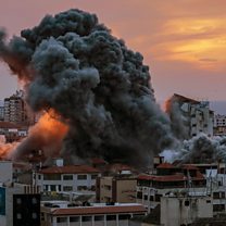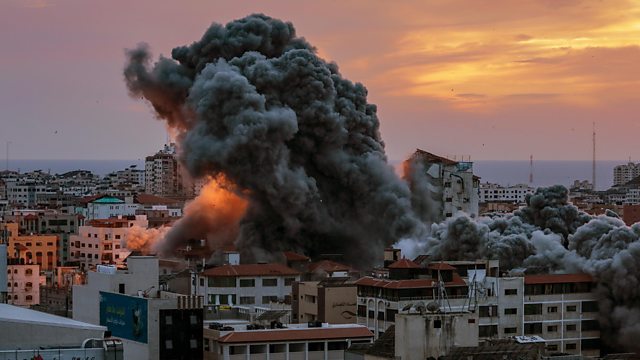 (Picture: Smoke rises after Israeli warplanes targeted the Palestine tower in Gaza City. Credit: MOHAMMED SABER/EPA-EFE/REX/Shutterstock)