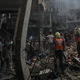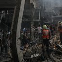 (Picture: People search for survivors at the site of an Israeli rocket attack in Al-Shati refugee camp in the west of Gaza City. Credit: Mohammed Saber/EPA-EFE/REX/Shutterstock)