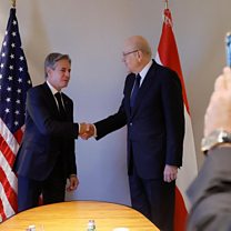 The US Secretary of State Antony Blinken is in Jordan today for discussions with representatives of Arab nations who are expected to call for an immediate ceasefire in Gaza. Yesterday, Mr Blinken's call for humanitarian pauses were rebuffed by the Israeli prime minister, Benjamin Netanyahu, who said there would be no break in its attacks on Gaza until all hostages there were freed.