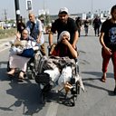 (Photo: A Palestinian woman, who was injured in an Israeli strike and was staying at Al Shifa hospital, moves southward after fleeing north Gaza. Credit: Reuters).