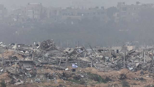 (Photo: Israeli flags fly next to the rubble of destroyed buildings in Gaza, amid the ongoing conflict. CREDIT: REUTERS/Violeta Santos Moura)
