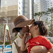 (Photo: A South Korean mother kisses her child. Credit: JEAN CHUNG)