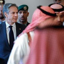 (Photo: U.S.Secretary of State Antony Blinken walks to the U.S.-Arab meeting with representatives from Egypt, Jordan, Saudi Arabia, Qatar, the United Arab Emirates and the Palestinian Authority in Riyadh, Saudi Arabia. Credit: REUTERS / Evelyn Hockstein / Pool)
