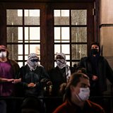 Dozens of demonstrators have escalated their protest over the war in Gaza.