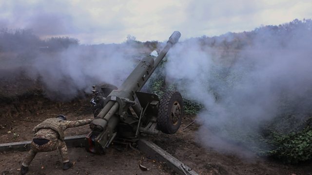 Photo: A Ukrainian soldier fires a D-30 howitzer towards Russian troops in Kharkiv region, Ukraine Credit: REUTERS/Vyacheslav Madiyevskyy