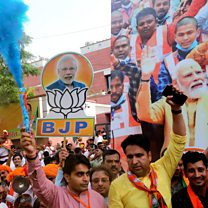 (Photo: Jubilant Modi supporters outside BJP HQ in Delhi. Credit: Shutterstock)