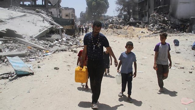 (Photo: Displaced Palestinians carry water containers as Gazan families struggle with water pollution and scarcity, amid the ongoing conflict between Israel and Hamas, in Jabalia refugee camp, northern Gaza, 8 June, 2024 Credit: Mahmoud Issa/Reuters)