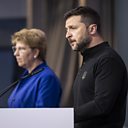 (Photo: Ukrainian President Volodymyr Zelensky arrive to attend a media briefing during the Summit on Peace in Ukraine. Credit: ALESSANDRO DELLA VALLE/POOL/EPA-EFE/REX/Shutterstock)