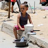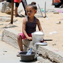 (Picture: A child in Gaza waits to receive food. Credit: Reuters / Khaled)