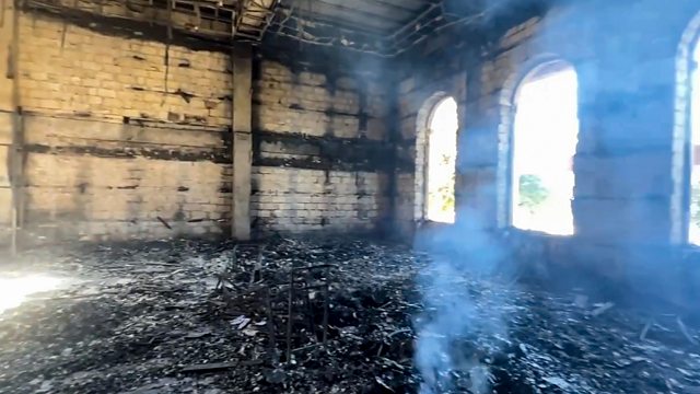(Photo shows damage to the Kele-Numaz synagogue following a terror attack in Derbent, Republic of Dagestan, Russia on 24 June 2024. Credit: Video on the Telegram channel of the head of Dagestan Republic Sergey Melikov via EPA)