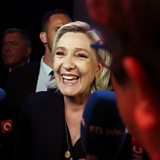 (Photo shows Marine Le Pen, leader of the far-right National Rally party, speaking to journalists after partial results in the first round of the early French parliamentary elections in Henin-Beaumont, France on 30 June 2024. Credit: Yves Herman/Reuters)