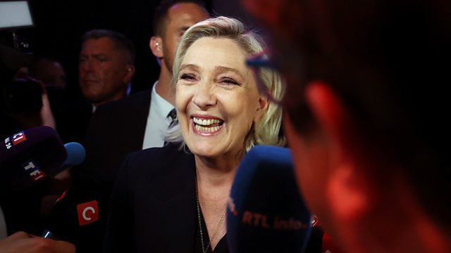 Celebrating her party's early success, Marine Le Pen says "democracy has spoken" as she declares President Emmanuel Macron's camp "practically wiped out". Meanwhile, Mr Macron is calling for a broad alliance against Ms Le Pen's party ahead of next week's second round.