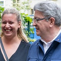 Pic: Deputy of LFI Matilde Panod (L) and leader of La France Insoumise (LFI) Jean-Luc Melenchon arrive to the Headquarter of the Party for a meeting in Paris Credit: Andre Pain/EPA)