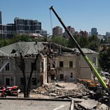 A Russian missile struck the main children's hospital in Kyiv on Monday.