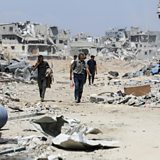 (Photo: Palestinians inspect damage after Israeli forces withdrew from Shejaiya neighborhood in eastern Gaza city. Credit: REUTERS/Dawoud Abu Alkas)