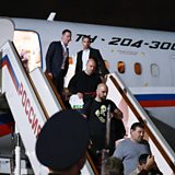 (Photo shows Russian citizens released after the Russian-US prisoner swap disembarking from a plane at Vnukovo International Airport in Moscow, Russia on 1 August 2024. Credit: Sergei Ilyin/Sputnik/Kremlin Pool via EPA)