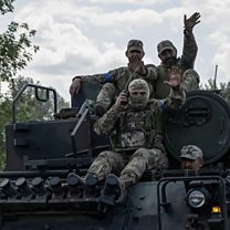 (Picture: Ukrainian service members ride an Armoured Personnel Carrier near the Russian border in Sumy region. Credit: Viacheslav Ratynskyi for Reuters)