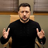 (IMAGE: Ukrainian President Volodymyr Zelenskiy speaks during a meeting with members of the media on the outskirts of London, Britain, March 2, 2025. / CREDIT: REUTERS/Carlos Jasso)