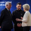 (Photo: EU Council President Antonio Costa, Ukraine's President Volodymyr Zelensky and European Commission President Ursula von der Leyen arrive for an European Special Council meeting in Brussels, Belgium, 6th March 2025. Credit: Christophe Petit-Tesson/EPA-EFE/REX/Shutterstock)