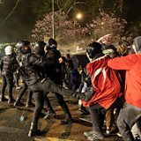 (Photo: Turkish riot police clash with protesters trying to march to Taksim Square from the Istanbul Municipality headquarters during a protest against the detention of Istanbul Mayor Ekrem Imamoglu in Istanbul, Turkey, 23 March 2025. Credit: Photo by ERDEM SAHIN/EPA-EFE/REX/Shutterstock)