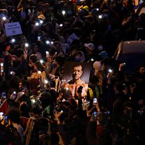 (Photo: A person carries an image depicting Istanbul Mayor Ekrem Imamoglu as people flash mobile phone lights during a protest against the arrest of Imamoglu as part of a corruption investigation, in Istanbul, Turkey, March 25, 2025. REUTERS/Umit Bektas)