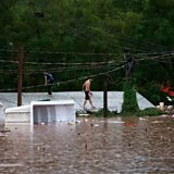 (Photo: People walk on a roof in a flooded area next to the Taquari River during heavy rains in Encantado, Rio Grande do Sul state, Brazil, May 2, 2024. Diego Vara/Reuters)