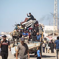 (Photo: Internally displaced Palestinians keep moving after Israeli evacuations orders in Rafah - 08 May 2024. Credit: HAITHAM IMAD/EPA-EFE/REX/Shutterstock)