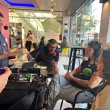 (Photo: James Reynolds with guests live in Mexico City. Credit: BBC)