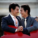 (Photo: Members of the LGBTQ+ community react as they celebrate after the passing of the marriage equality bill in its second and third readings by the Senate, which will effectively make Thailand Asia's third territory to legalise same-sex unions, in Bangkok, Thailand, June 18, 2024. Credit: Chalinee Thirasupa/Reuters)