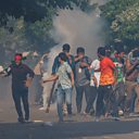 (Photo: People run as police fire teargas during a coffin rally of anti-quota protesters at the University of Dhaka. Credit: Mohammad Ponir Hossain/Reuters)