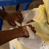 (Photo: A medical worker checks the hands and arms of a child with suspected Mpox following an outbreak in DRC. Credit: Arlette Bashizi/Reuters)