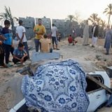 (Photo: A vehicle was left buried in sand after the overnight air strike in southern Gaza. Credit: Reuters)