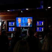 (Photo: People watch the presidential debate in New York City, U.S., September 10, 2024. Credit: Adam Gray/Reuters)
