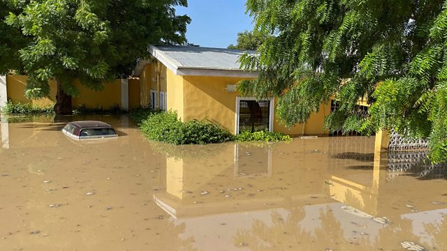 The Nigerian military and emergency workers are using boats to rescue people trapped in areas hit by flooding in the north-east of the country. Officials say more than 400,000 people have been displaced. We speak to our reporter and to a Red Cross representative in the city of Maiduguri.