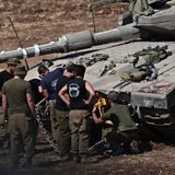 (Photo: Israeli soldiers check military vehicles at a gathering site next to the border with Lebanon as seen from an undisclosed location in northern Israel, 30 September 2024. Credit: ATEF SAFADI/EPA-EFE/REX/Shutterstock)