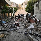 (Photo: Debris lies on a road following an Israeli airstrike in Beirut's Bachoura neighborhood, Lebanon, 03 October 2024. Credit: Wael Hamzeh/EPA-EFE/REX/Shutterstock)