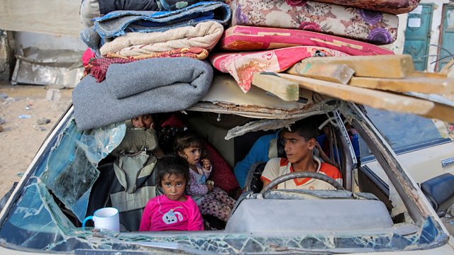 We hear from people in Gaza who have had to flee the fighting, and our Middle East experts reflect on the year of destruction in the region.