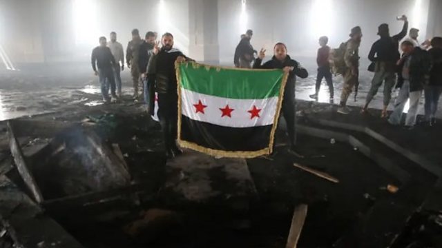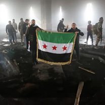 Images show rebel fighters setting fire to tomb of Hafez al-Assad in Qardaha.