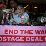 (Photo: Relatives and supporters of the hostages kidnapped during the deadly October 7, 2023 attack by Hamas hold a protest performance promoting a deal that would bring the hostages home, in Tel Aviv, Israel, December 17, 2024. Credit: Stoyan Nenov/Reuters)
