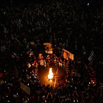 (Photo: People gather near a fire during a protest against Israeli Prime Minister Benjamin Netanyahu's government and to call for the release of hostages kidnapped in the deadly October 7 attack on Israel by the Palestinian Islamist group Hamas from Gaza, in Tel Aviv, Israel, April 6, 2024. REUTERS/Hannah McKay)